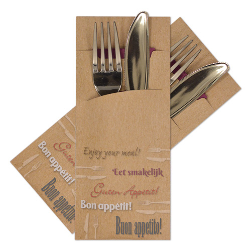 Full colour bedrukt op hoogwaardig FSC papier standaard geleverd met een 2-laags servet van 33 x 33 cm.